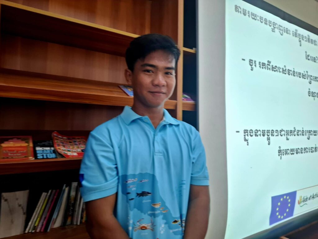 Leading this outreach session was Mattrohet Tahir, Regional Projects Manager for Action Education / Aide et Action (AEA), already known for his grassroots efforts to protect the fragile ecosystems along the coast. Joining him were two of AEA’s passionate youth volunteers—Than Sothon, 21, and Nos Ziani, 23—who reinforced the session’s core message: marine conservation starts with education and is fuelled by action.