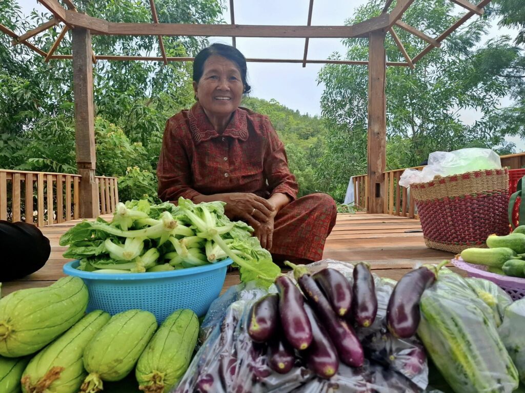 Sarun has spent decades growing food to nourish her large family. “I have nine children and twelve grandchildren,” she said. “They come to pick up vegetables for their daily consumption. It’s how we live—together and from the land.”
