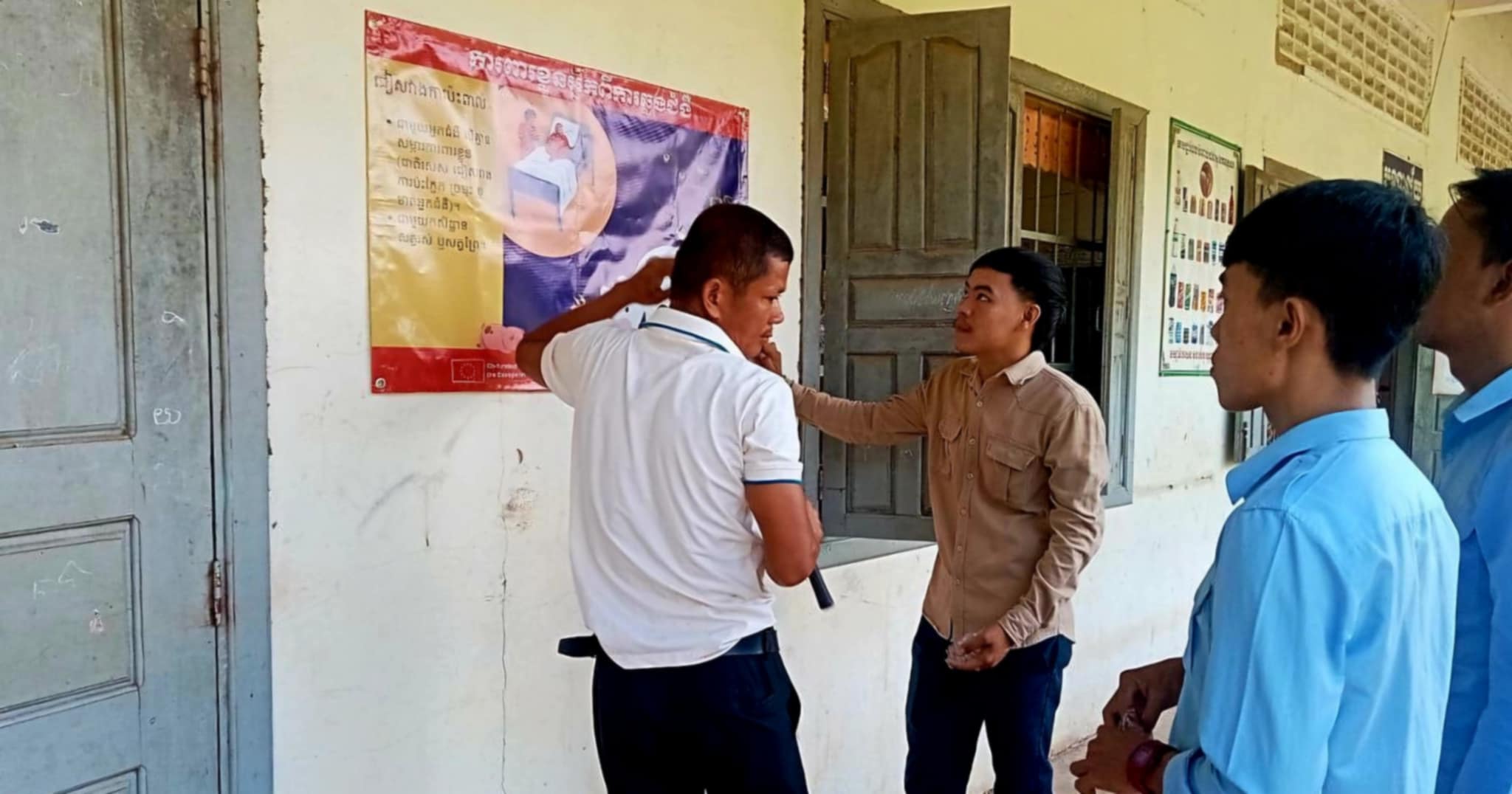 Photo: After the health session, posters are displayed on the walls of Koh Tnaot Primary School.