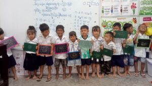 Every morning, Un Rim ensures her three daughters— Kim Heng (12), Kim Houy (10), and Kim Han (8) — as well as her nephew, Bi (8) wash before setting off for Koh Krishna Primary School. It’s a simple daily ritual that speaks volumes about how much life has changed for her family over the past year and a half.