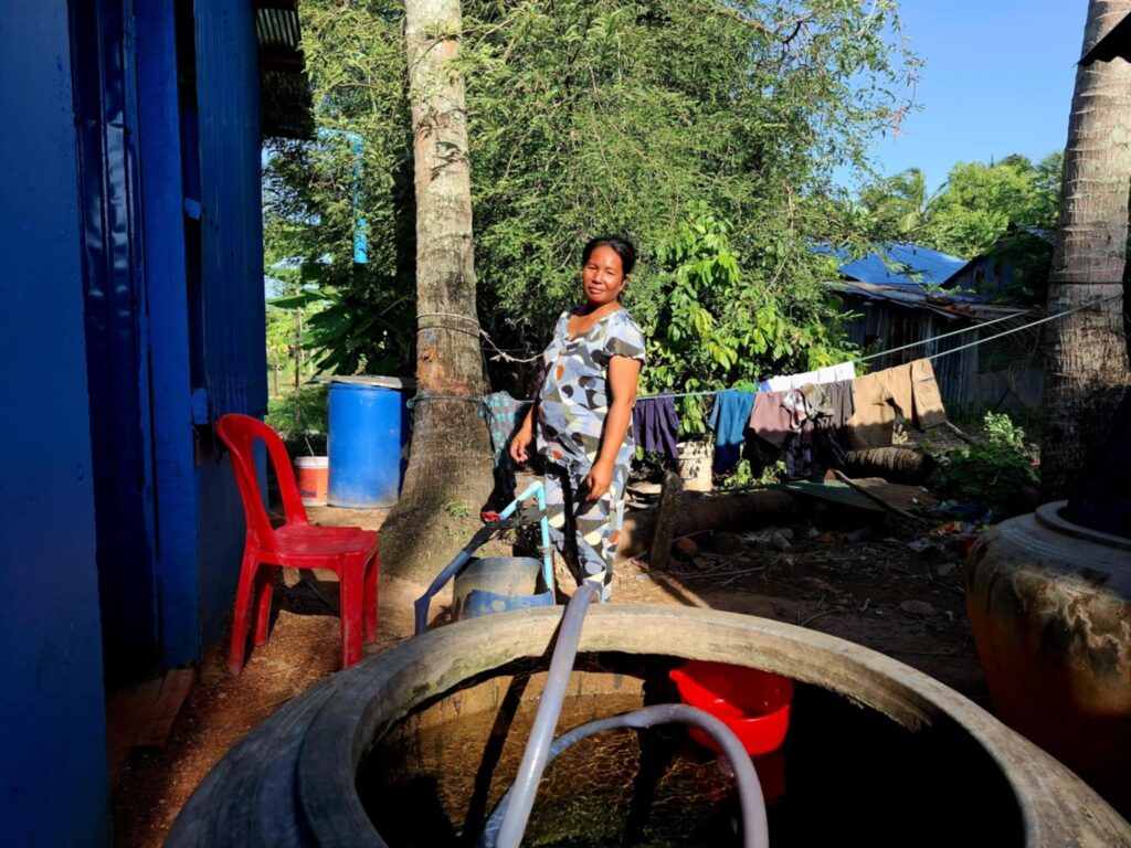 Un Rim lives in Koh Krishna, a remote village in Kampong Trach district, Kampot province. She works in rice fields while her husband is a fisherman. Like many families in rural Cambodia, they used to rely on rainwater and a well for their daily water needs.