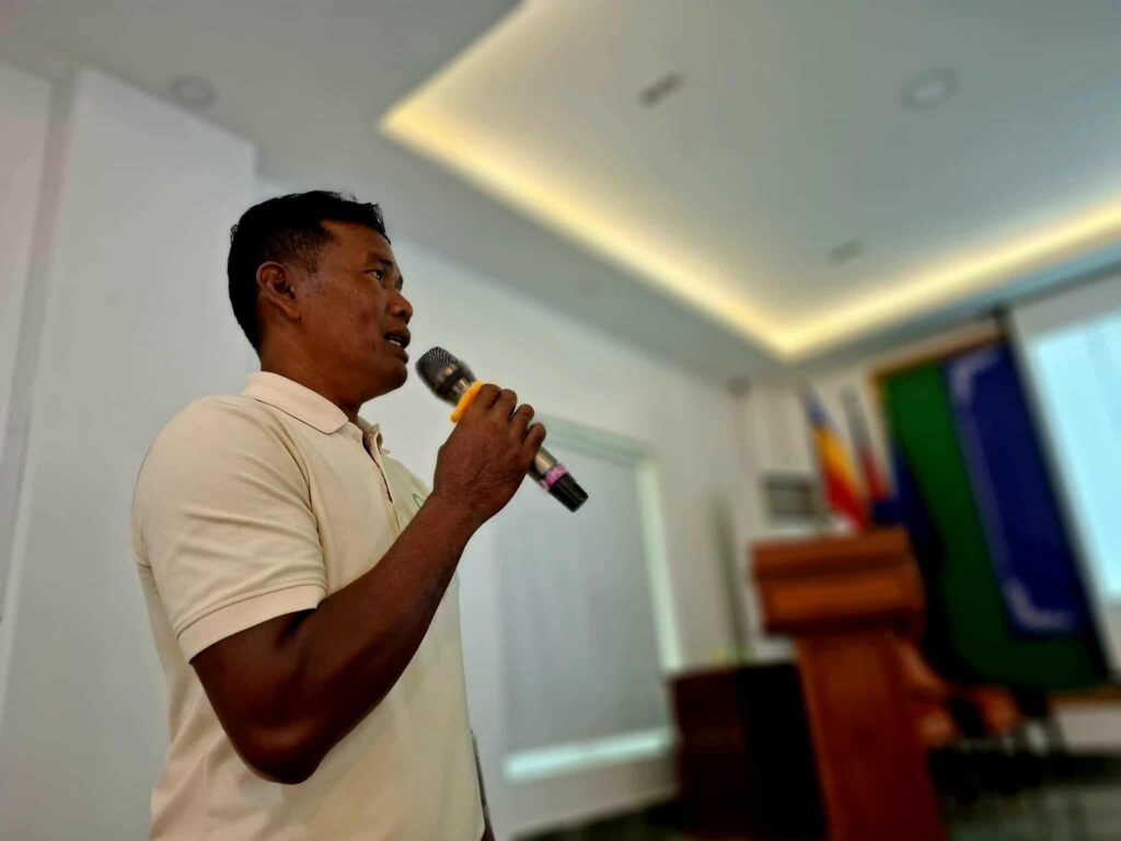 At a meeting on strengthening community fisheries management in Kep Province, Ouch Chean, a community leader from Kampong Tralach, stood as a voice for his people, sharing both the struggles and the dreams of his community.