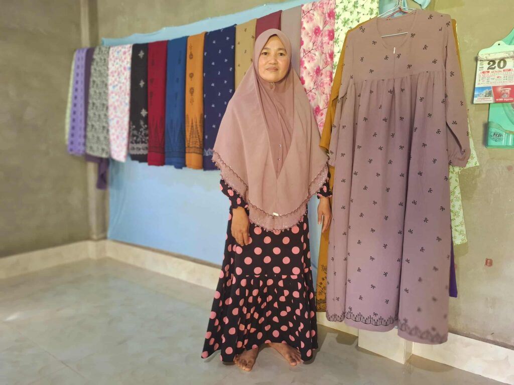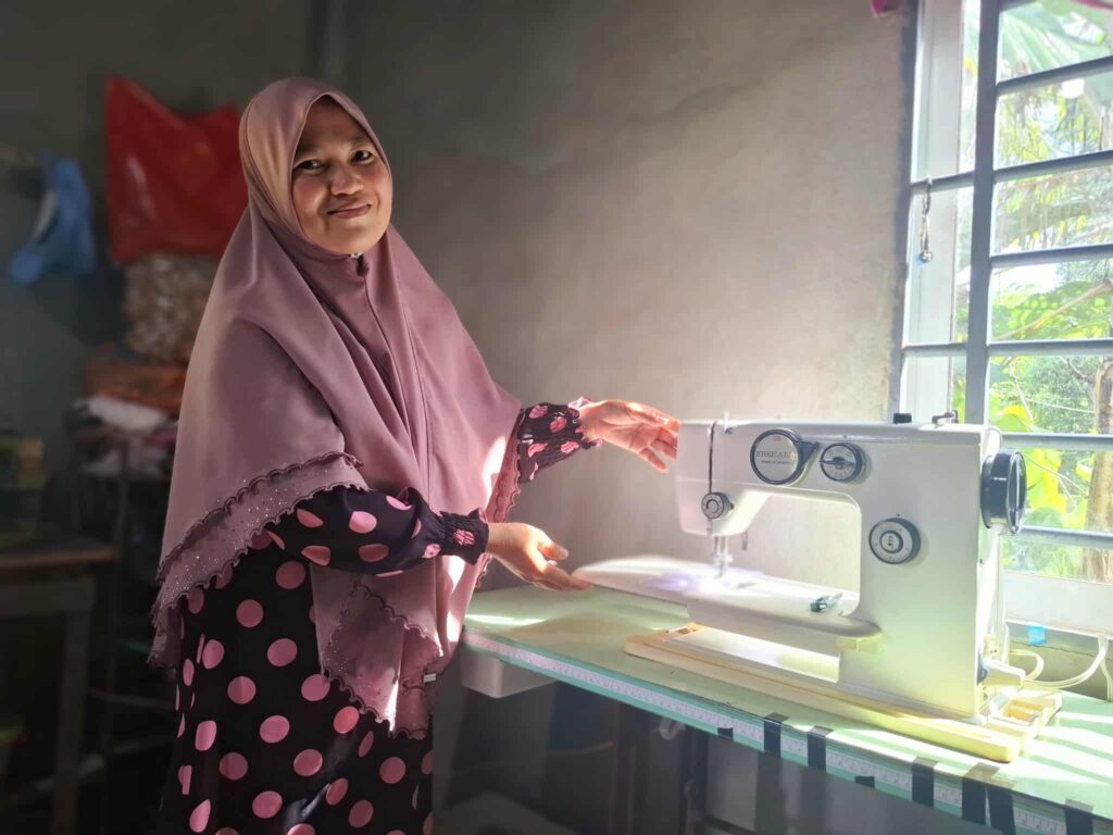 She adds with a laugh: “It also saves expenses when I make clothes for myself and my children.” Her sewing not only supports her family but also strengthens her community. “People in the village come to me to fix or make clothes,” she shares.