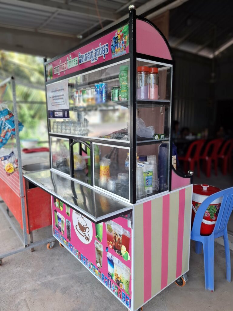 “It’s clean, easy to maintain, and attracts more customers. When people pass by, they see my pretty cart and stop for a coffee. Villagers also come to support my business,” Sou explains with joy.